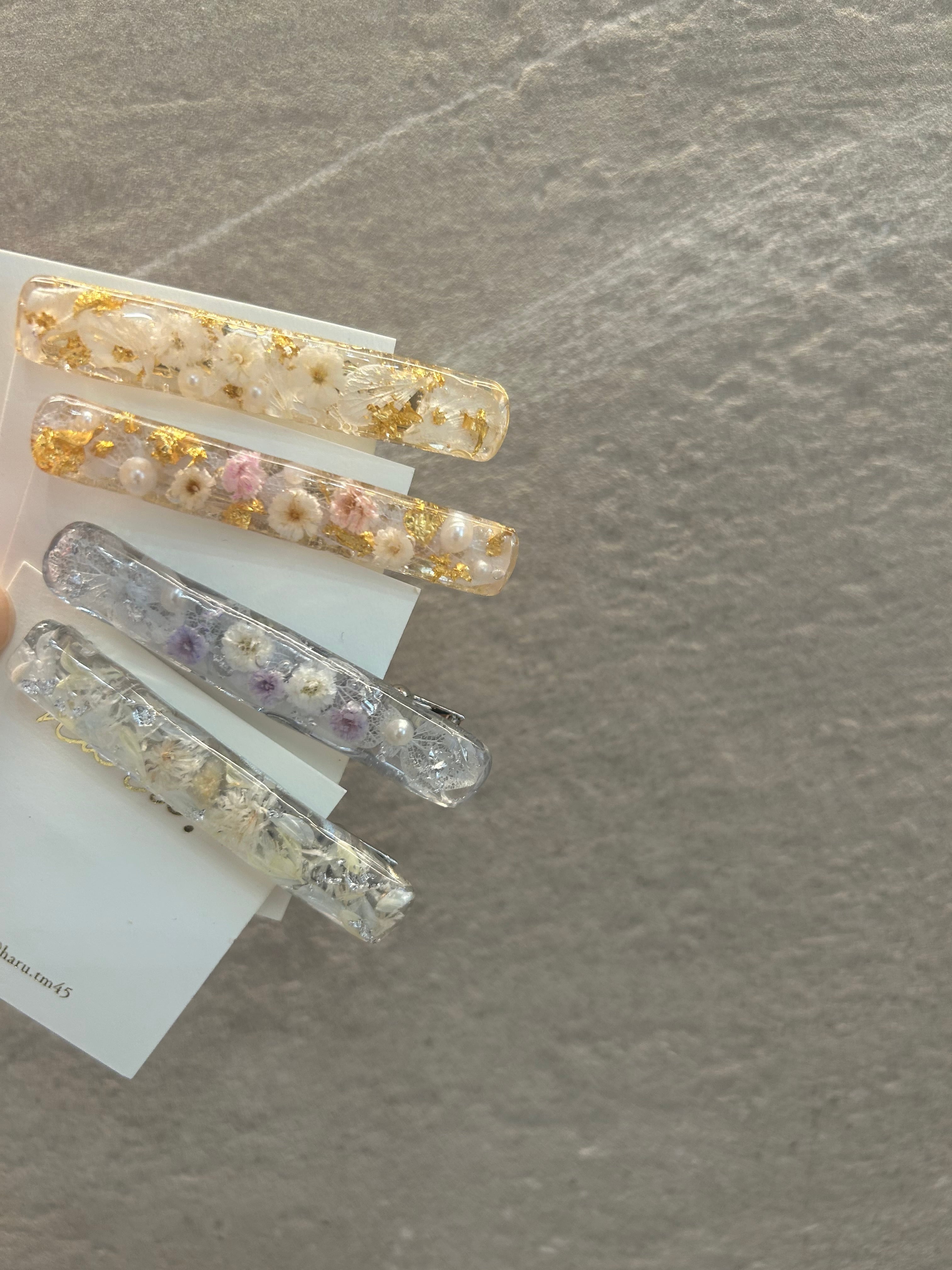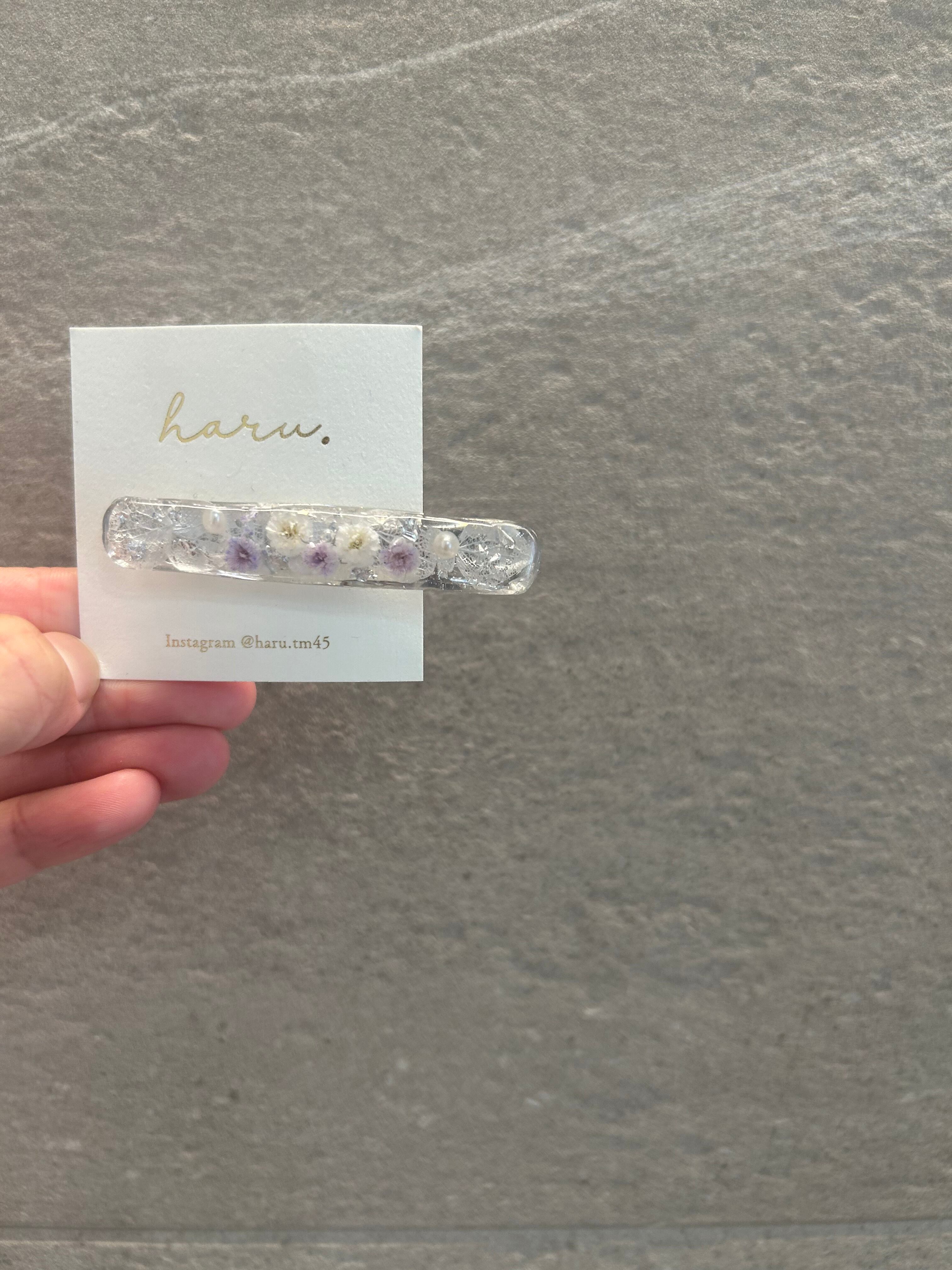 かすみ草、紫陽花を使ったヘアクリップとなります✨